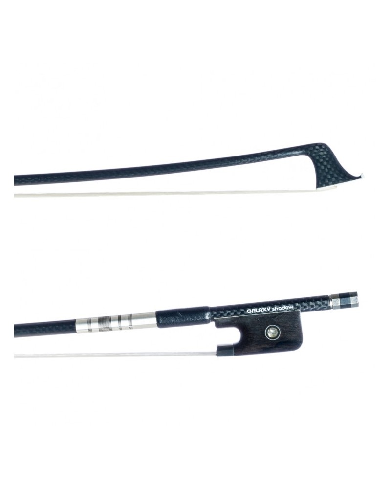 Arco Galaxy Shadow fabricado con fibra de carbono, material más resistente y longevo que la madera, y que reacciona muy poco a los cambios de temperatura o humedad. Gracias a la gran resistencia del material, minimiza mucho el riesgo de rotura de la vara, así como también mantiene una elasticidad muy constante. Tiene muy buenas propiedades acústicas, siendo capaz de proporcionar un sonido rápido y claro. Este modelo tiene buena relación calidad-precio y es ideal para músicos de nivel intermedio.