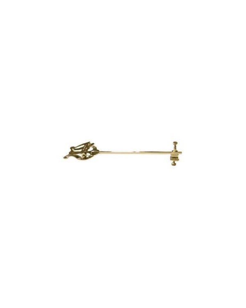 Atril de marcha para trompa. Atril curvado con soporte abierto con bisagra Ø13 mm que se ajusta al diámetro específico de cada instrumento gracias a su palomilla. La superficie de contacto del soporte con la trompa se encuentra recubierta con un material suave para proteger el instrumento. Muelle de acero. Tamaño SUPER, las medidas de la lira son 70 x 55 mm. Atril reforzado con pie de latón para conferirle mayor fortaleza. Este atril no necesita que la trompa disponga de portatril. Acabado dorado. Peso aproximado 76g. Fabricado en España.