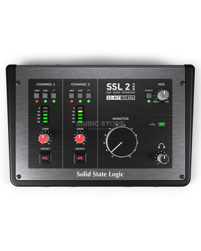 -MIDI in/out. Salidas no balanceadas adicionales para conexión con mezcladores DJ. Con SSL Production Pack, que incluye ProTools First (con colección de plugins AAX de SSL), Ableton Live Lite, 1,5Gb de muestras de Loopcloud y más de 2000 sonidos de instrumentos con Hybrid Keys y Native Instruments Komplete Start.