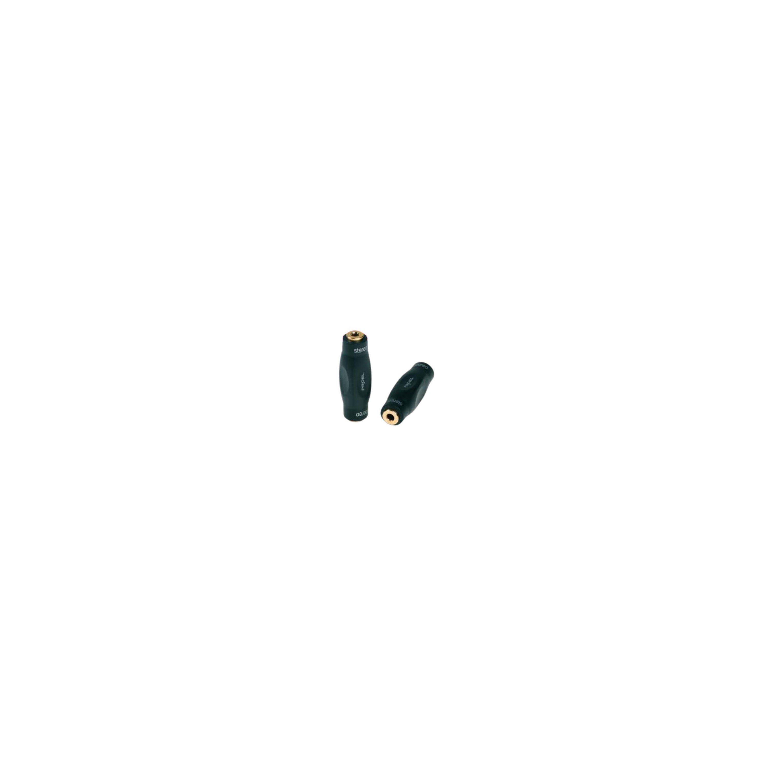 Adaptador con cuerpo sólido de metal con cobertura de ABS negro. Conectores libres de corrosión chapados en oro de 24 quilates: Jack estéreo hembra/ Jack estéreo hembra.