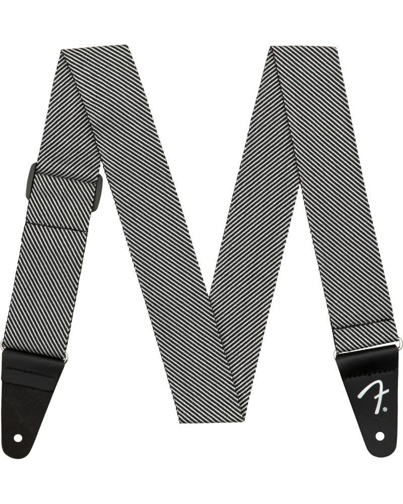 Wear your guitar in timeless Fender style with this modern take on the classic tweed strap. The combination of soft tweed, metal hardware and black leather ends featuring the classic "F" logo offer substantial, comfortable support with impeccable taste.