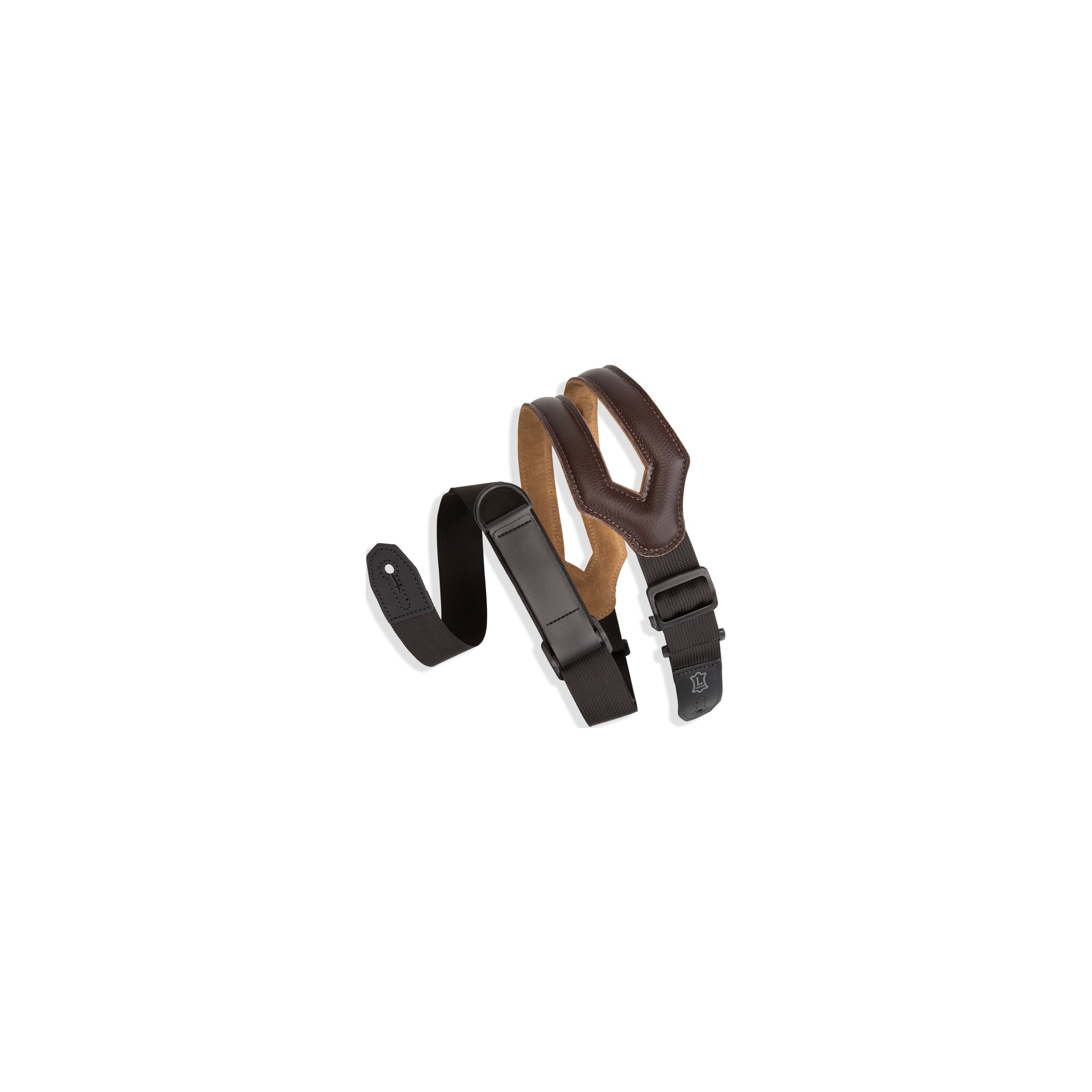 La correa Ergonomic Right Height™ de 3″ de Levy en marrón oscuro con la innovadora RipChord Technology™ presenta una lengüeta para acortar y alargar fácilmente.