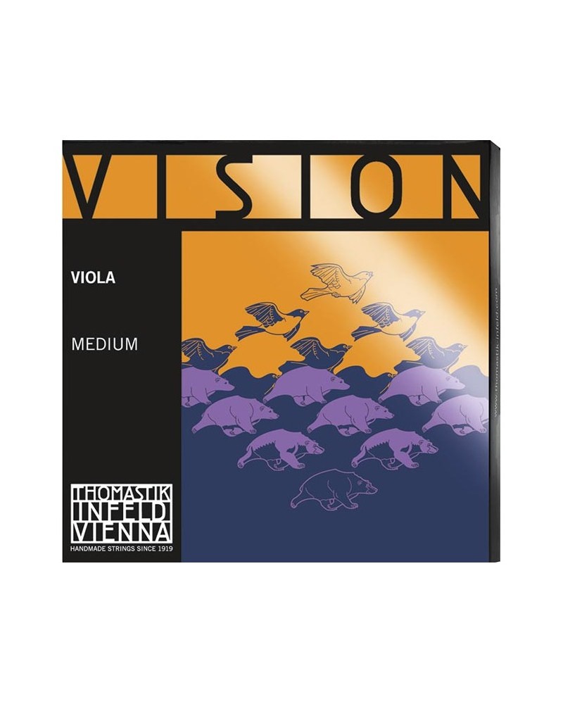 Las cuerdas Thomastik Vision de viola producen un tono potente, sonoro, con el equilibrio perfecto de brillo y calidez. Son cuerdas de última generación con una excelente estabilidad de ajuste, respuesta rápida, y gran modulación. Estas cuerdas tienen una larga vida útil, aunque el instrumento alcanza su espectro de sonido completo en muy poco tiempo.