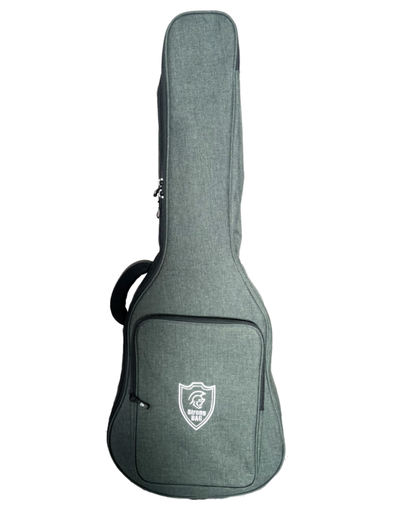 Fundas de poliéster plastificado, acolchado 10mm e interior de poliéster negro. Mochila fija. Refuerzos interiores y exteriores de skay. Cremallera de apertura lateral, bolsillo y asas acolchadas. Para guitarras acústicas.