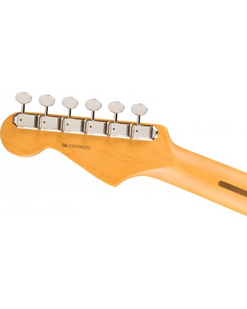 En su interior, las pastillas Coastline™ '57 Stratocaster® de inspiración vintage y la pastilla humbucker Coastline™ ofrecen profundidad, ataque y brillo, mientras que el elegante mástil con perfil "Modern C" proporciona una comodidad y una sensación al tocar excepcionales. Las clavijas escalonadas Fender ClassicGear™ combinan un aspecto clásico con una afinación precisa. Con acabados clásicos envejecidos y colores signature Fender®, este instrumento de nivel profesional suena tan bien como parece.