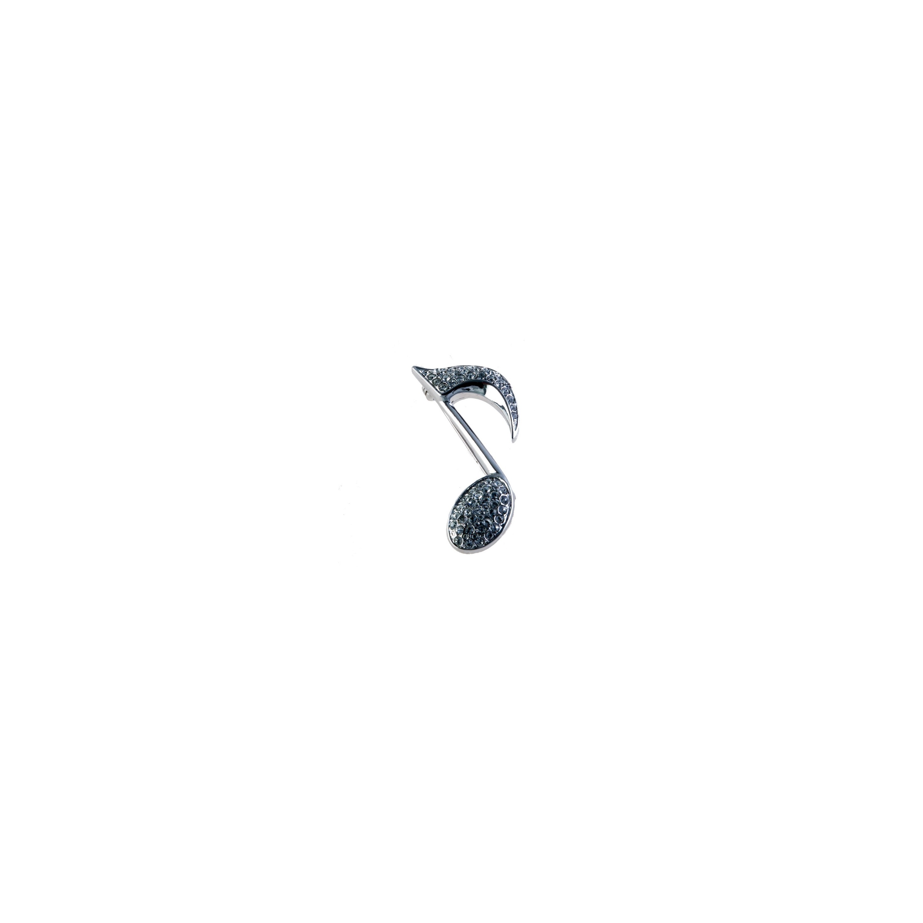 Broche plateado con forma de corchea adornado con cristales Swarovski. Presentación en estuche.