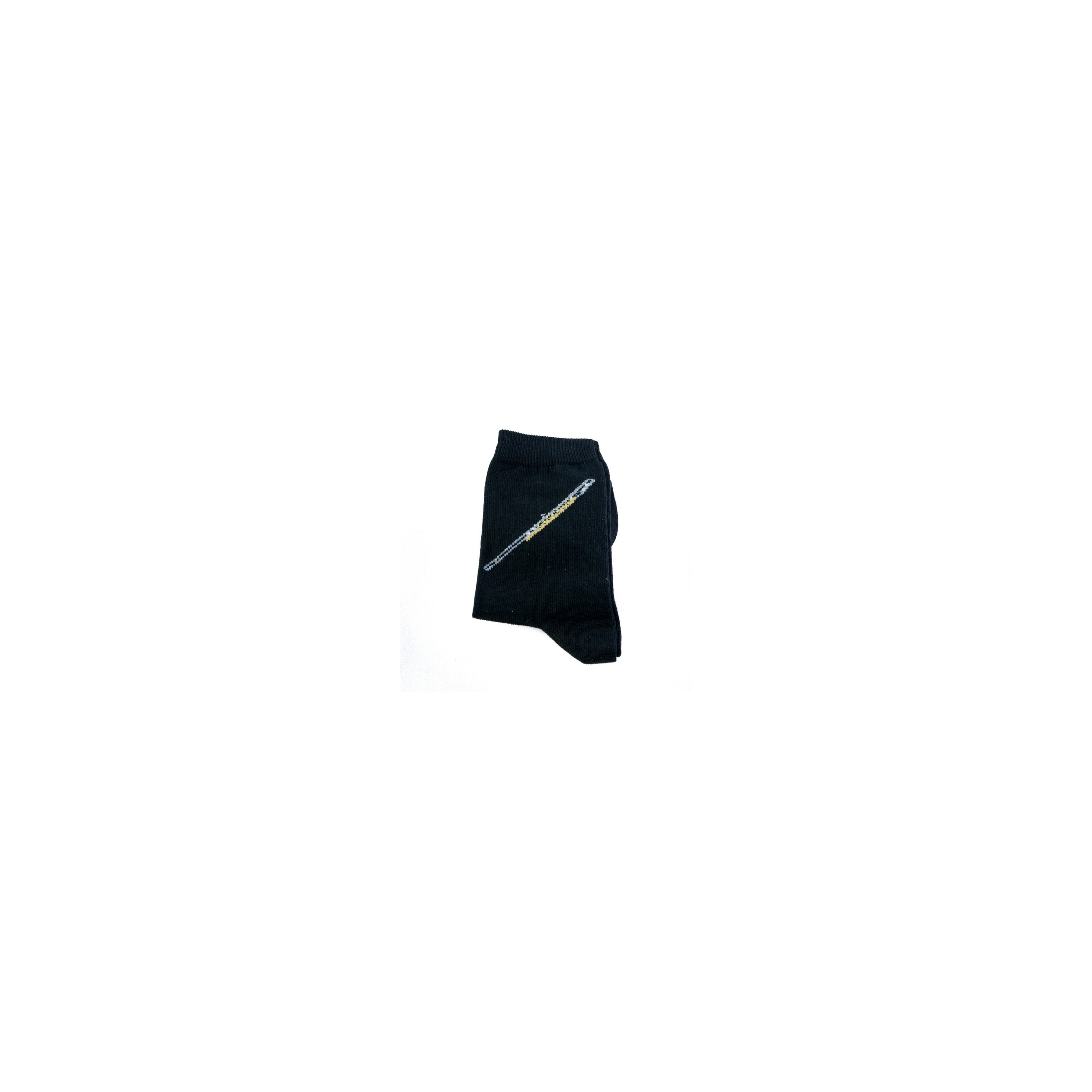 Calcetines negros con dibujo bordado de flauta travesera.