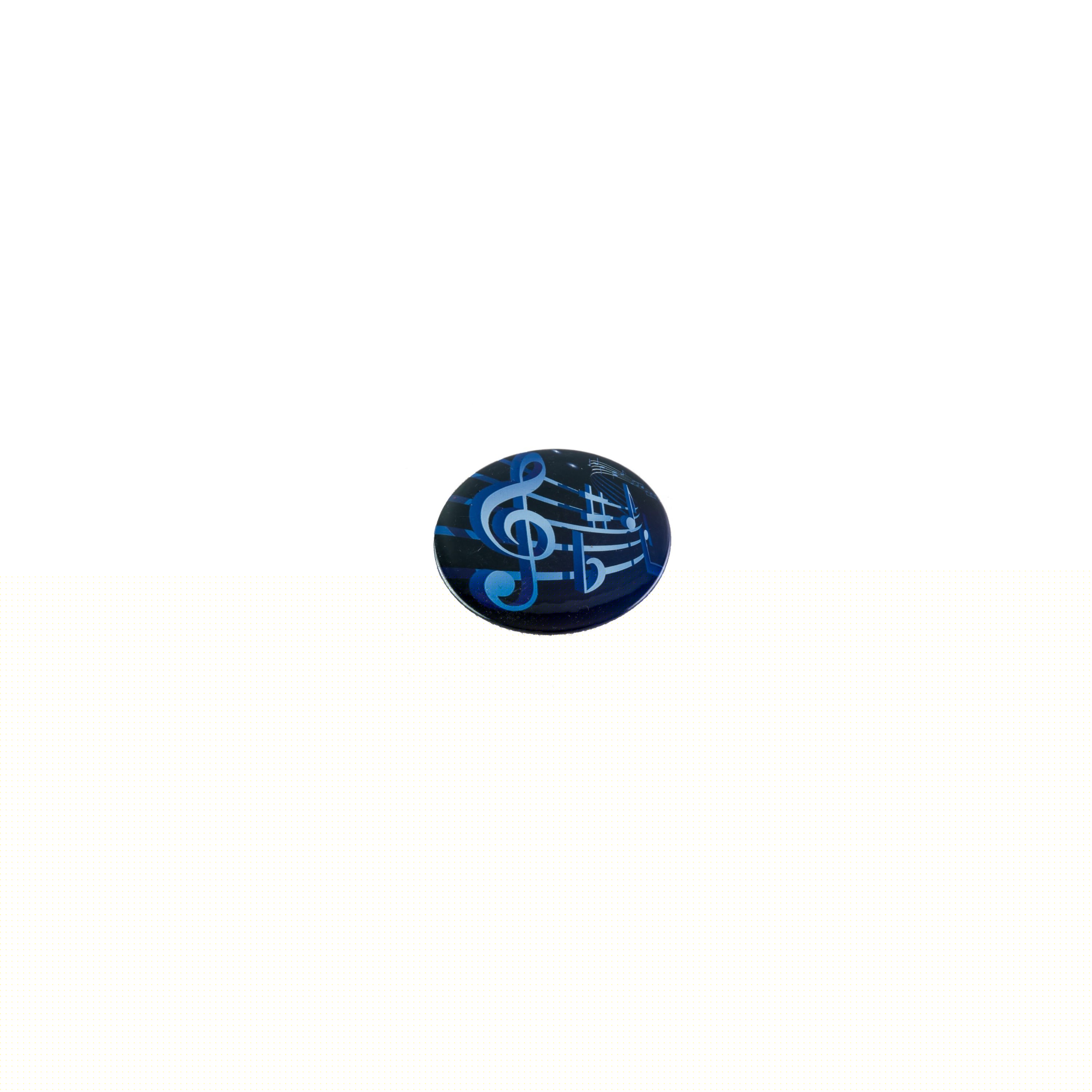 Chapa de color azul con dibujo de pentagrama.