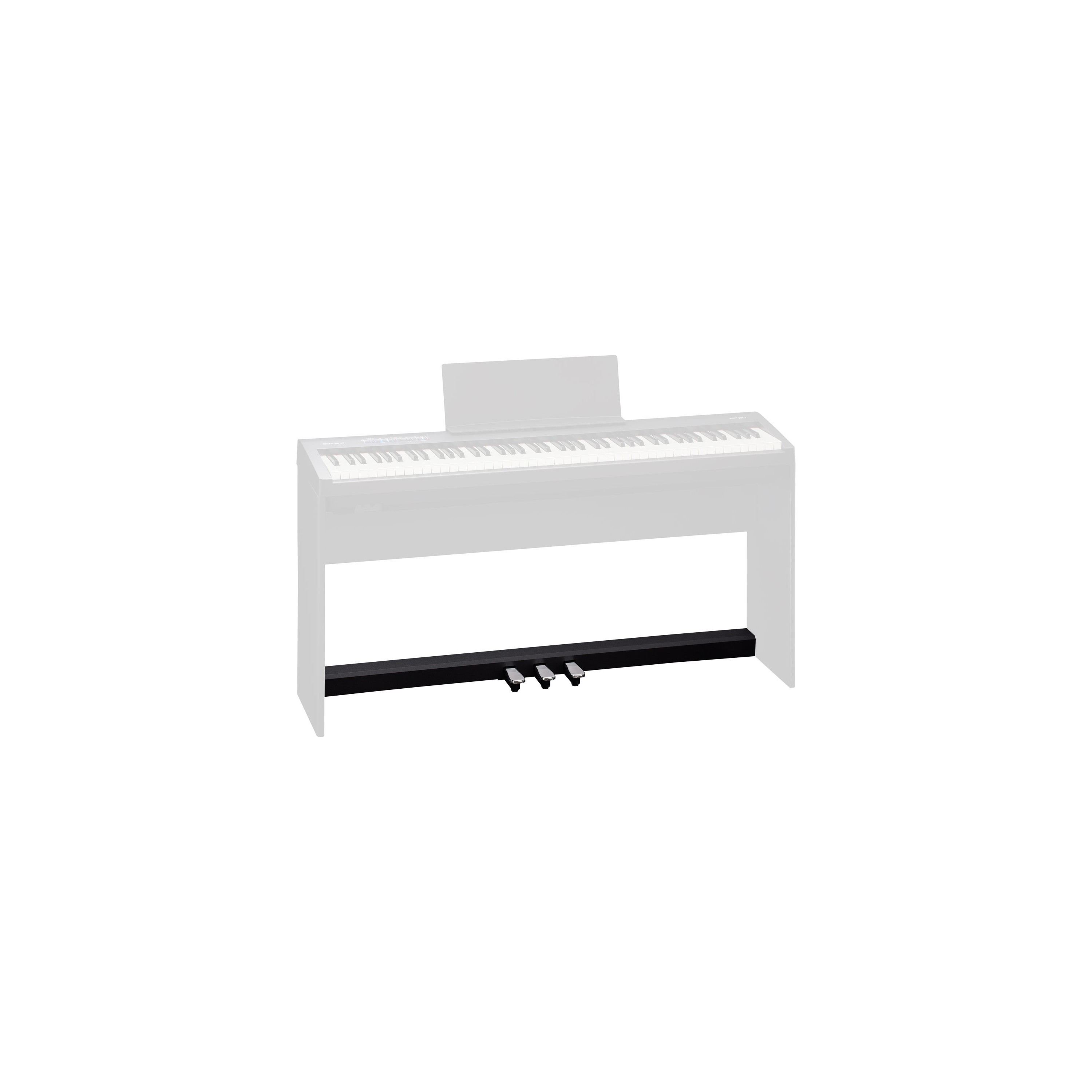 Tres pedales tipo piano para el mismo tipo de control de sostenido, sostenuto y sordina que caracteriza a los pianos de cola. |