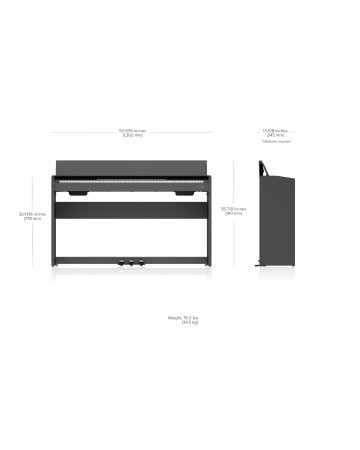 Los dispositivos móviles están muy arraigados en la vida diaria, y la conectividad de audio/MIDI Bluetooth integrada permite usarlos fácilmente en tu mundo pianístico. Reproduce música y contenido educativo en streaming a través del sistema de altavoces del F107 y toca encima, o compón tus obras maestras con apps musicales MIDI como GarageBand y otras. También tienes puertos USB para conectar con ordenadores y dispositivos de almacenamiento flash.