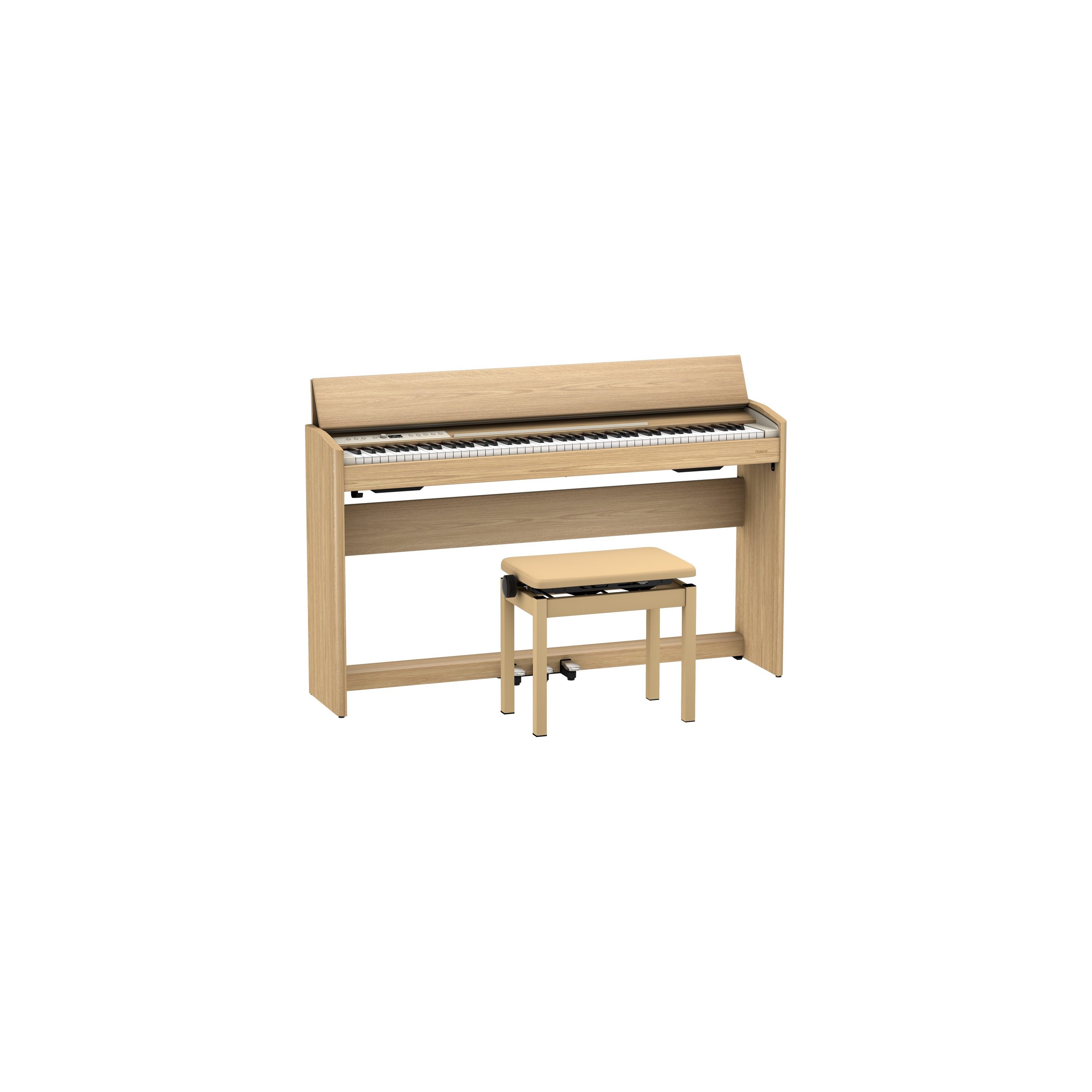 Sencillo, estilizado y sutil, el F701 encaja a la perfección en la decoración de tu hogar, con esquinas redondeadas y una tapa integrada que se desliza con suavidad para mostrar las teclas. También se ha prestado atención a la parte trasera, con conexiones perfectamente dispuestas para que el piano pueda orientarse en cualquier dirección sin que asomen los antiestéticos cables. Y con tres colores a elegir, es fácil encontrar la mejor opción para tu entorno: negro estándar, blanco limpio o roble claro con elegante simulación de veta.