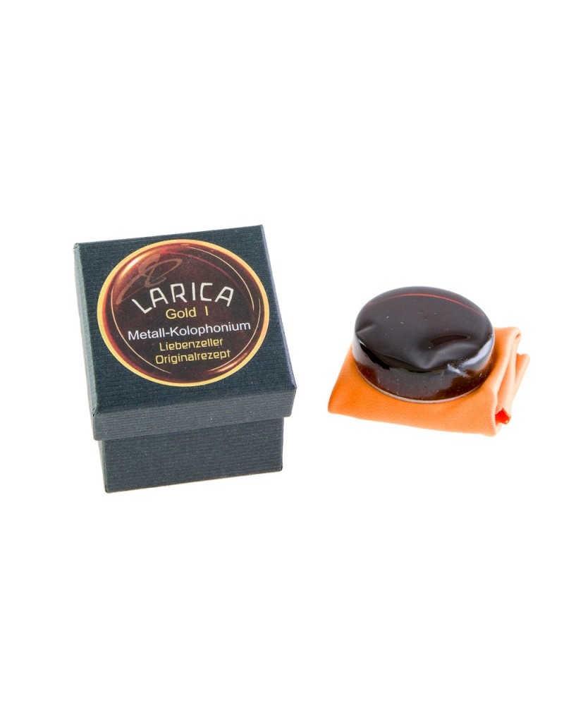 Resina para violín y viola Larica Gold III que aporta un sonido pleno, armonioso, redondo, cálido, voluminoso, radiante y claro.